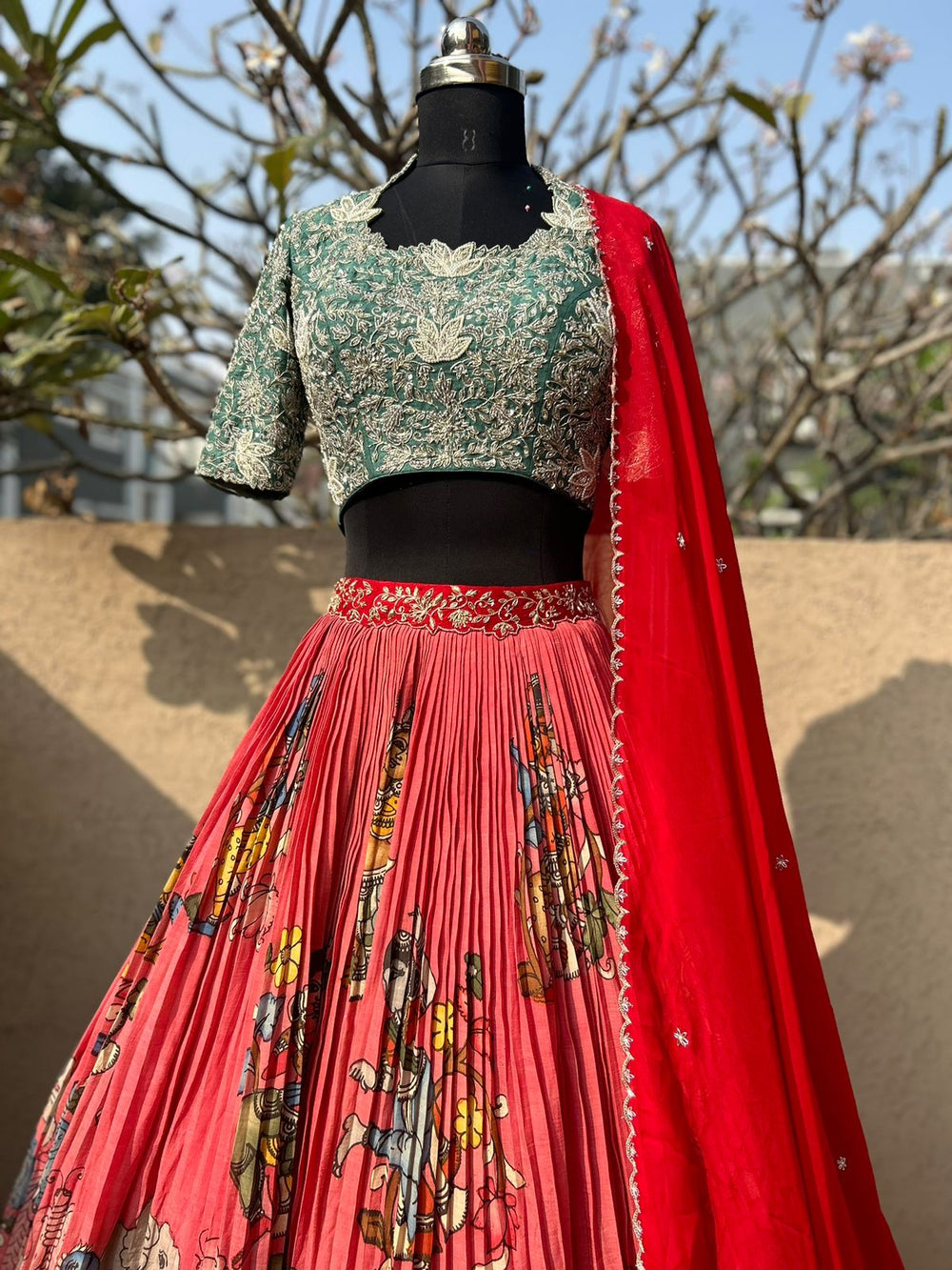 - Lehenga adorned with Intricate Kalamkari-Inspired Designs
