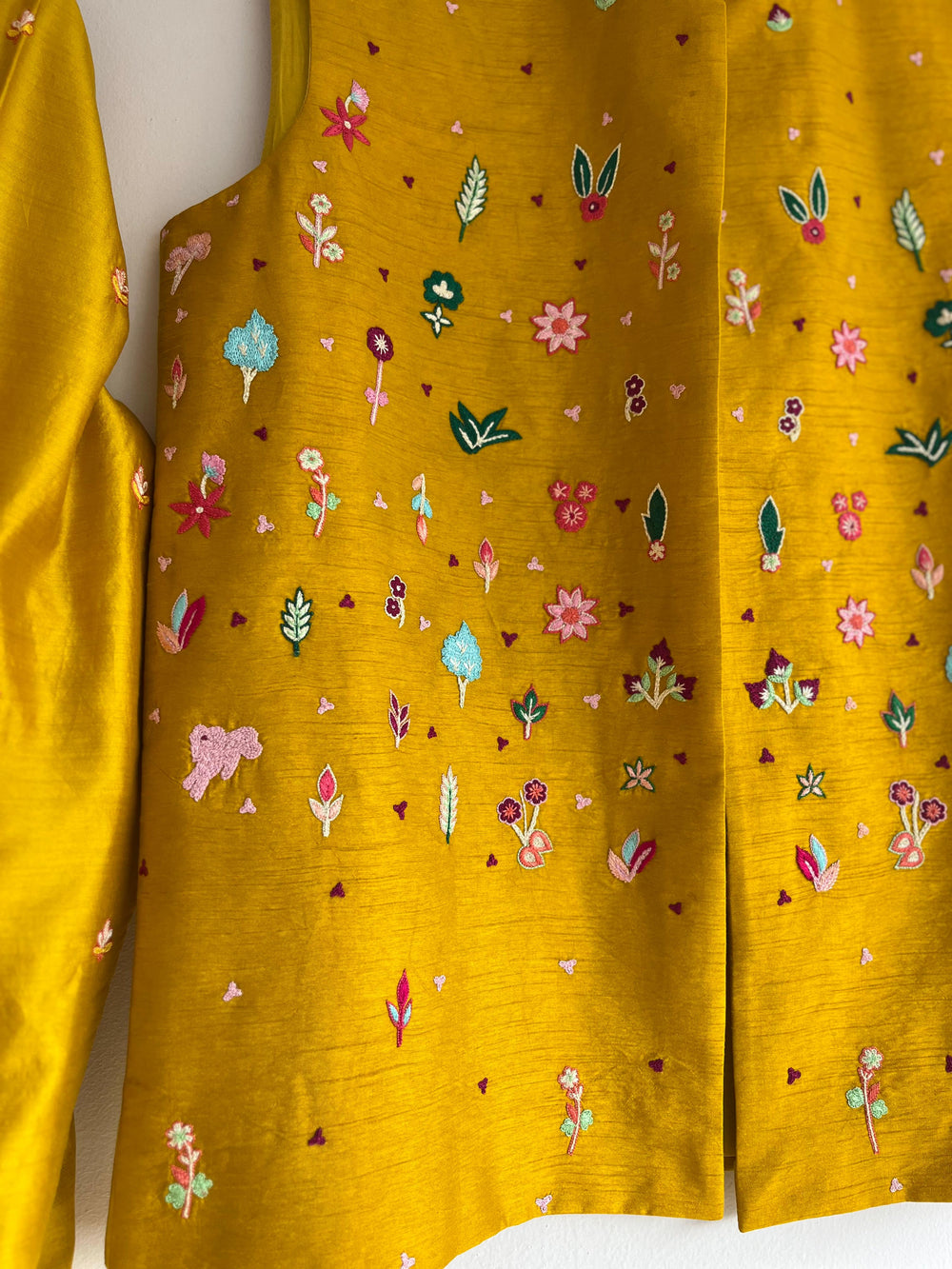 Yellow Rawsilk Jacket Set