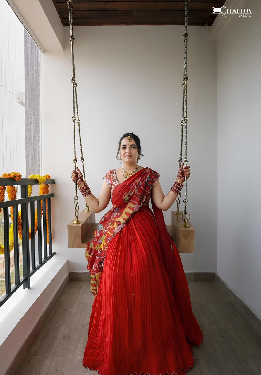 Dive into the world of traditional artistry with myRiti's exclusive Kalamkari Lehenga Collection. A seamless blend of culture and contemporary fashion, our collection promises to be a delightful addition to your wardrobe.
