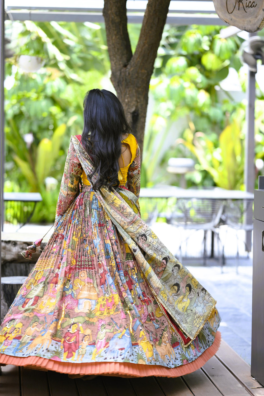 - Lehenga adorned with Intricate Kalamkari-Inspired Designs