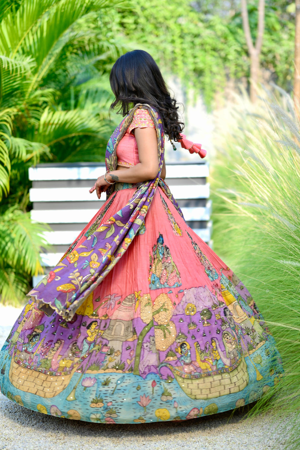 Introducing the breathtaking Pink Kalamkari Lehenga, a masterpiece of traditional Indian artistry, now available at MyRiti. This exquisite lehenga embodies the perfect blend of heritage and style, making it an ideal choice for women who wish to embrace the timeless beauty of Indian ethnic wear.