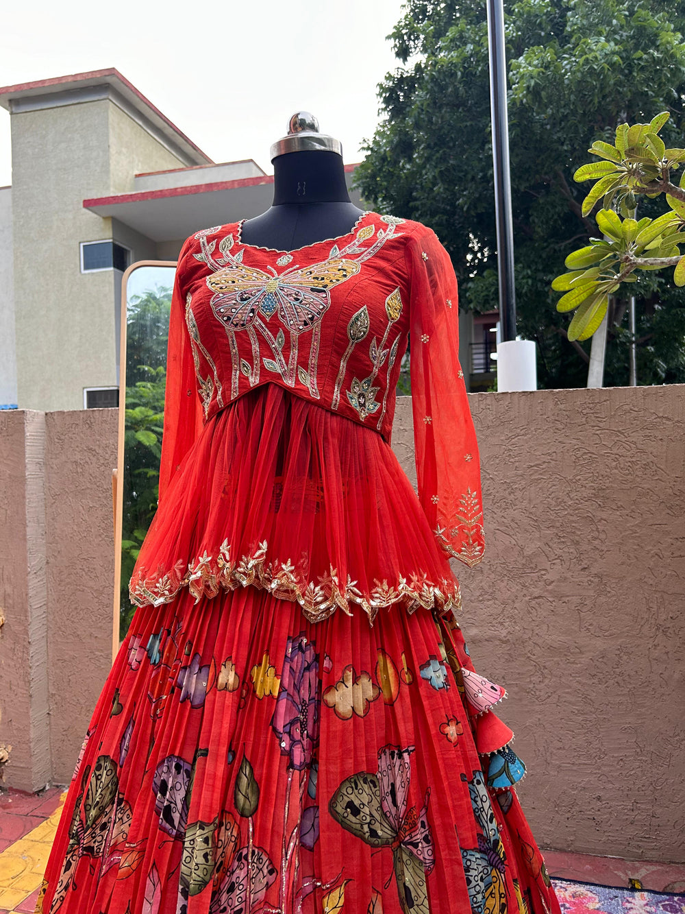 Peplum Top with Pen Kalamkari hand painted Lehenga.