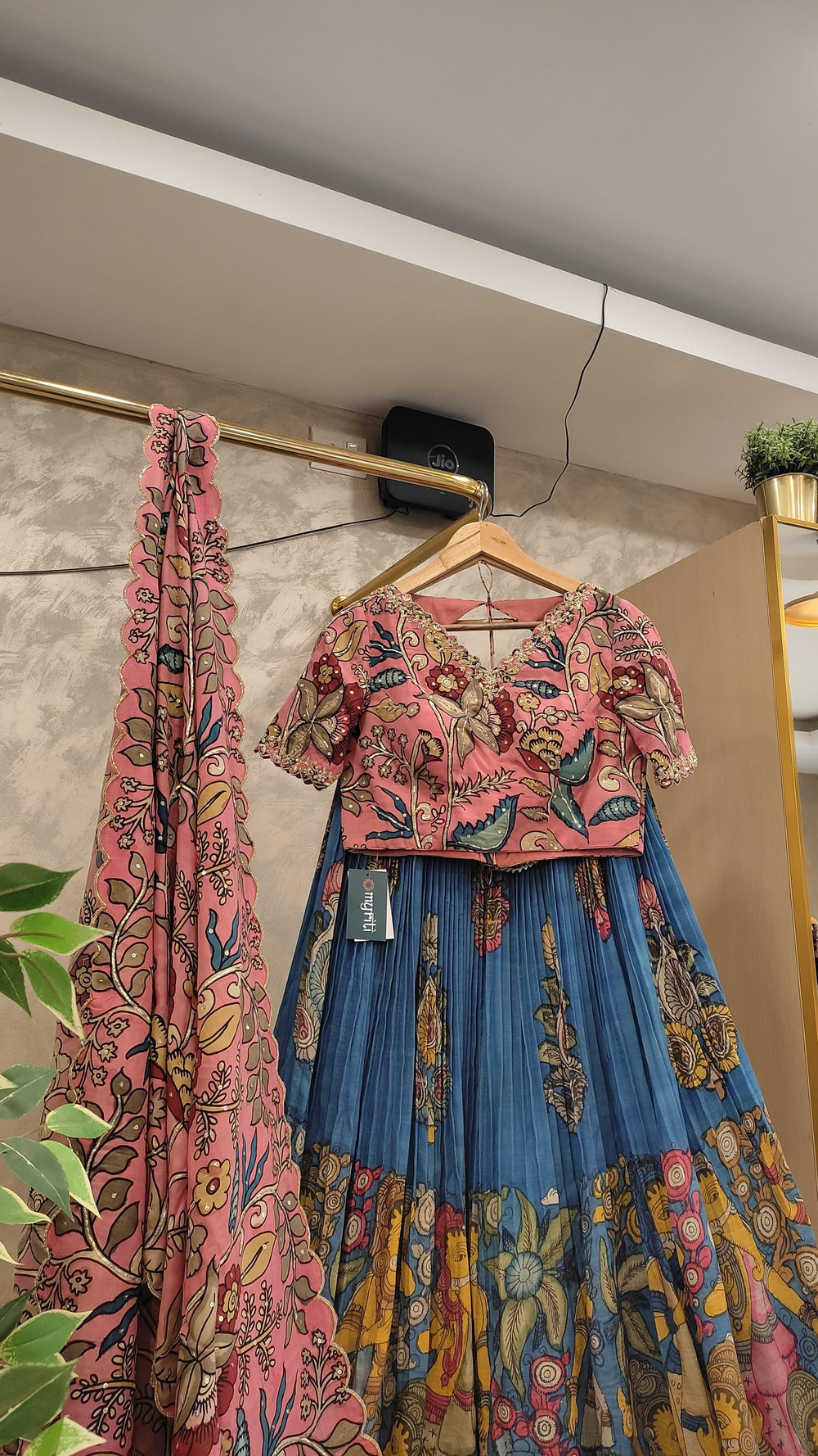 At MyRiti, we take pride in our collection of Indian ethnic wear, and this Kalamkari Lehenga is a testament to our commitment to quality and tradition. It's designed for the modern woman who values the elegance of traditional attire while seeking a contemporary edge. Shop now and make a statement at your next event with this stunning piece.