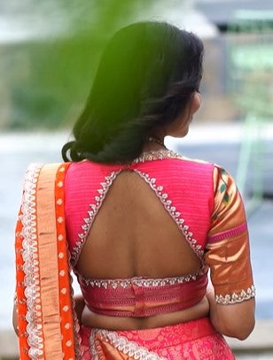 Discover the epitome of grace and elegance with our "Pink Silk Lehenga," exclusively at www.myriti.com. This outfit is made from rich silk fabric. Top is made from paithani silk with extremely rich handwork on front and sleeves of the top. This silk lehenga comes with a rich Banarasi Georgette border. The dupatta has a complete readymade border attached to it.