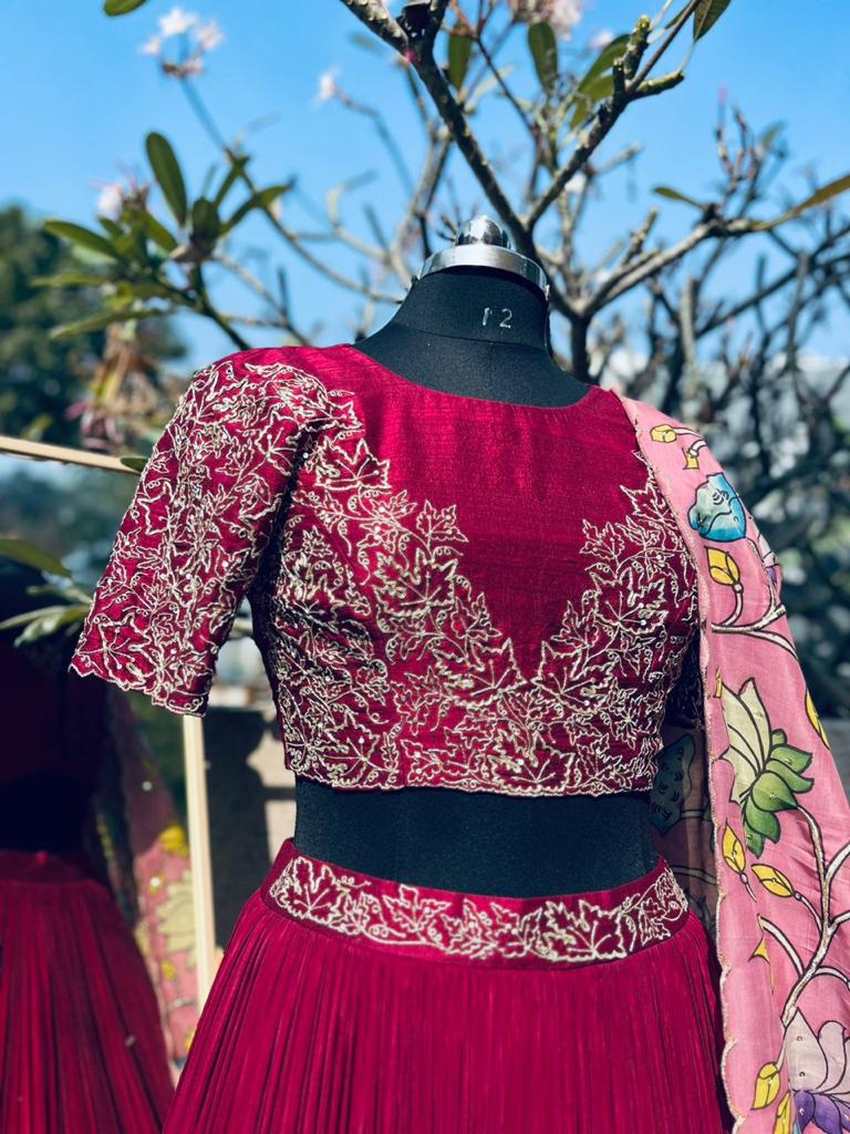 Magentha Lehenga in Natural Crape Paired with a Traditional Kalamkari Dupatta