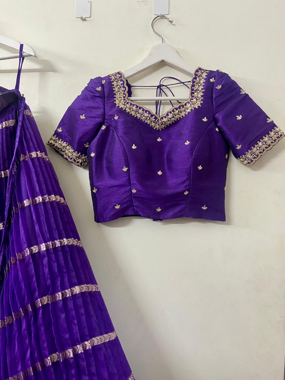 Its a Organza Silk Lehenga with very small pleats and handwork top on pure 100gm raw silk. It also comes with a pure bandani silk dupatta.