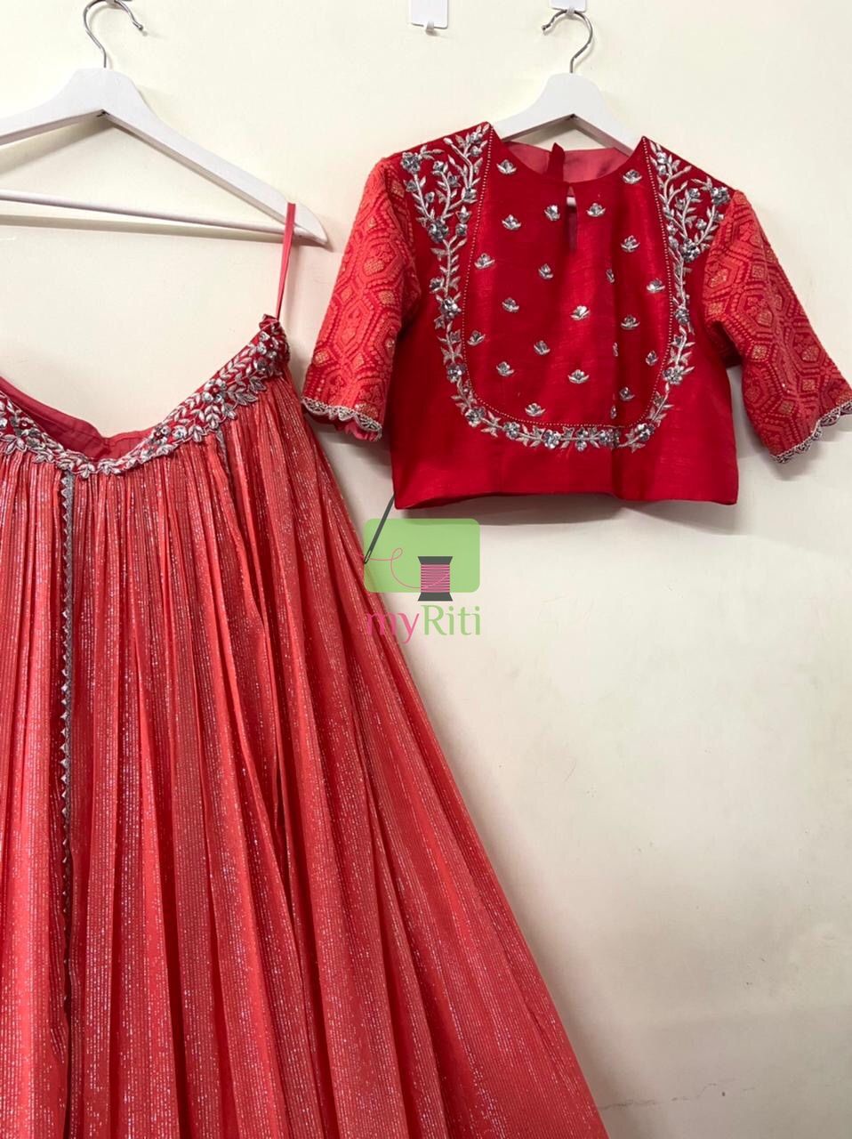 Each Outfit is made on order and it would approximately take about ~10-15 Days to get your outfit ready. For customization please ping us on Whats App @+91-8919332170.